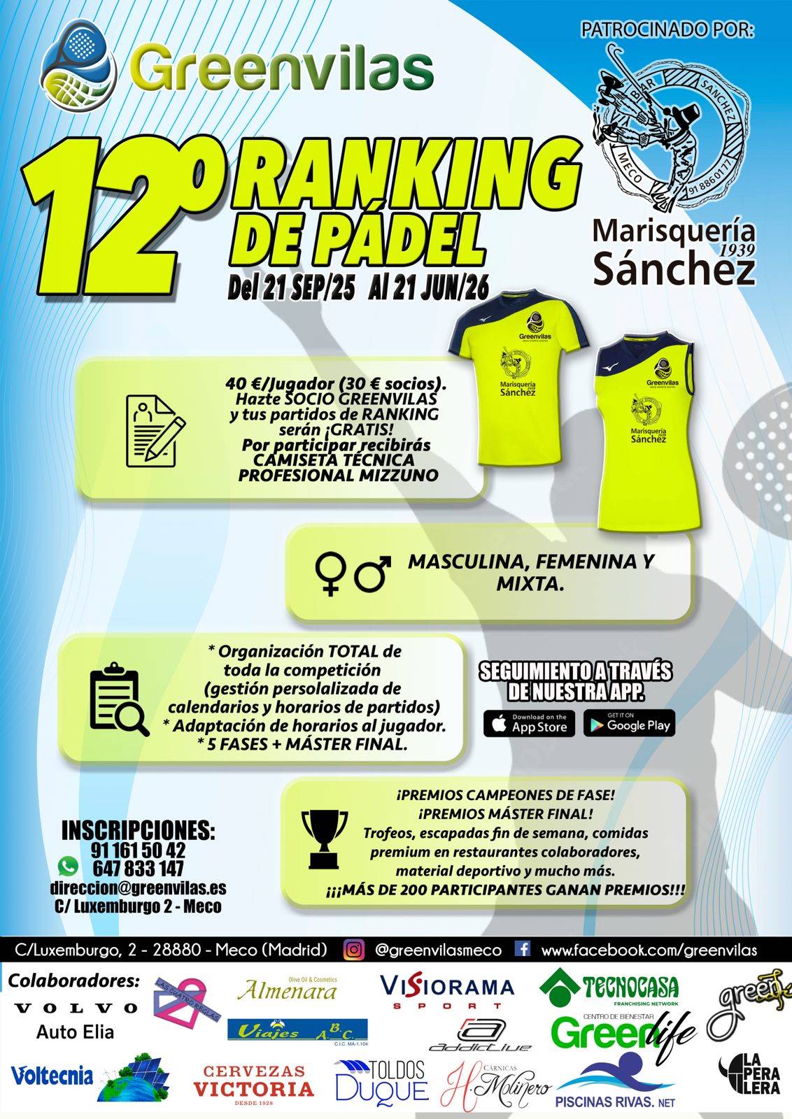 - Marisquería Sánchez (Meco), continúa con su colaboración activa y nos trae una NUEVA supercamiseta técnica, mejorando modelos de temporadas anteriores, para que la luzcas donde quieras.