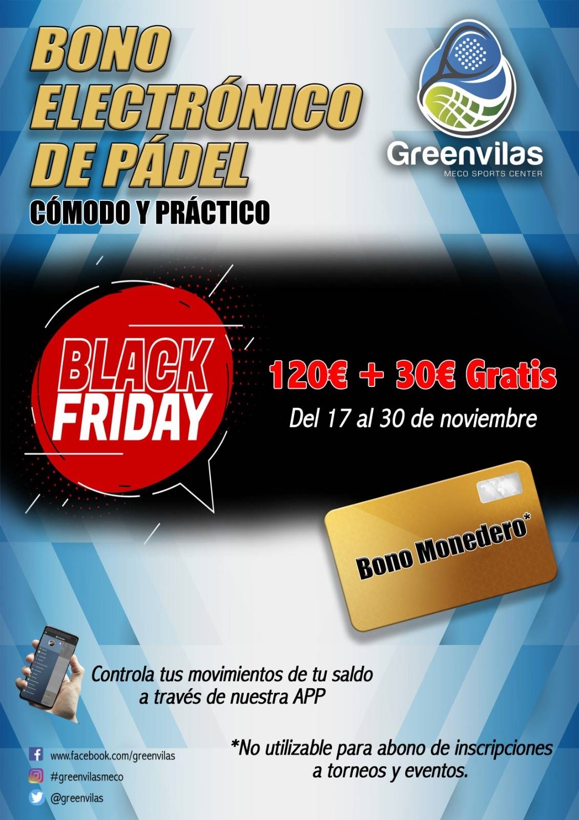 - OFERTA en BONO MONEDERO: recarga tu saldo del bono monedero con una pormoción única de conseguir un 25% de recarga gratis sobre el Bono BF de 120€ que tenemos preparado para estos días (promoción válida hasta el domingo 30 de noviembre). Recarga 120€ y en tu saldo dispondrás de 150€ (30€ gratis para que disfrutes de los servicios ofrecidos en el Club acogidos a BONOS MONEDERO).